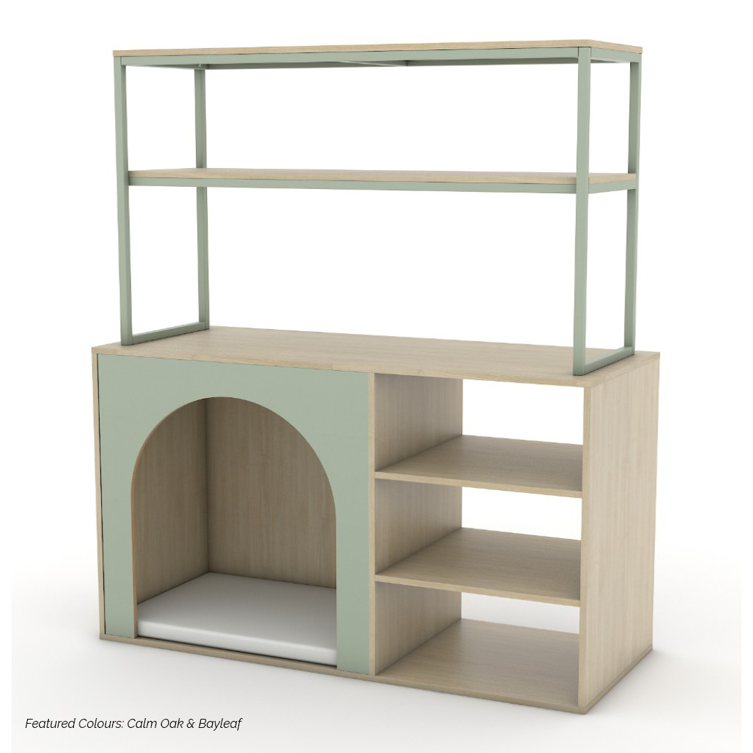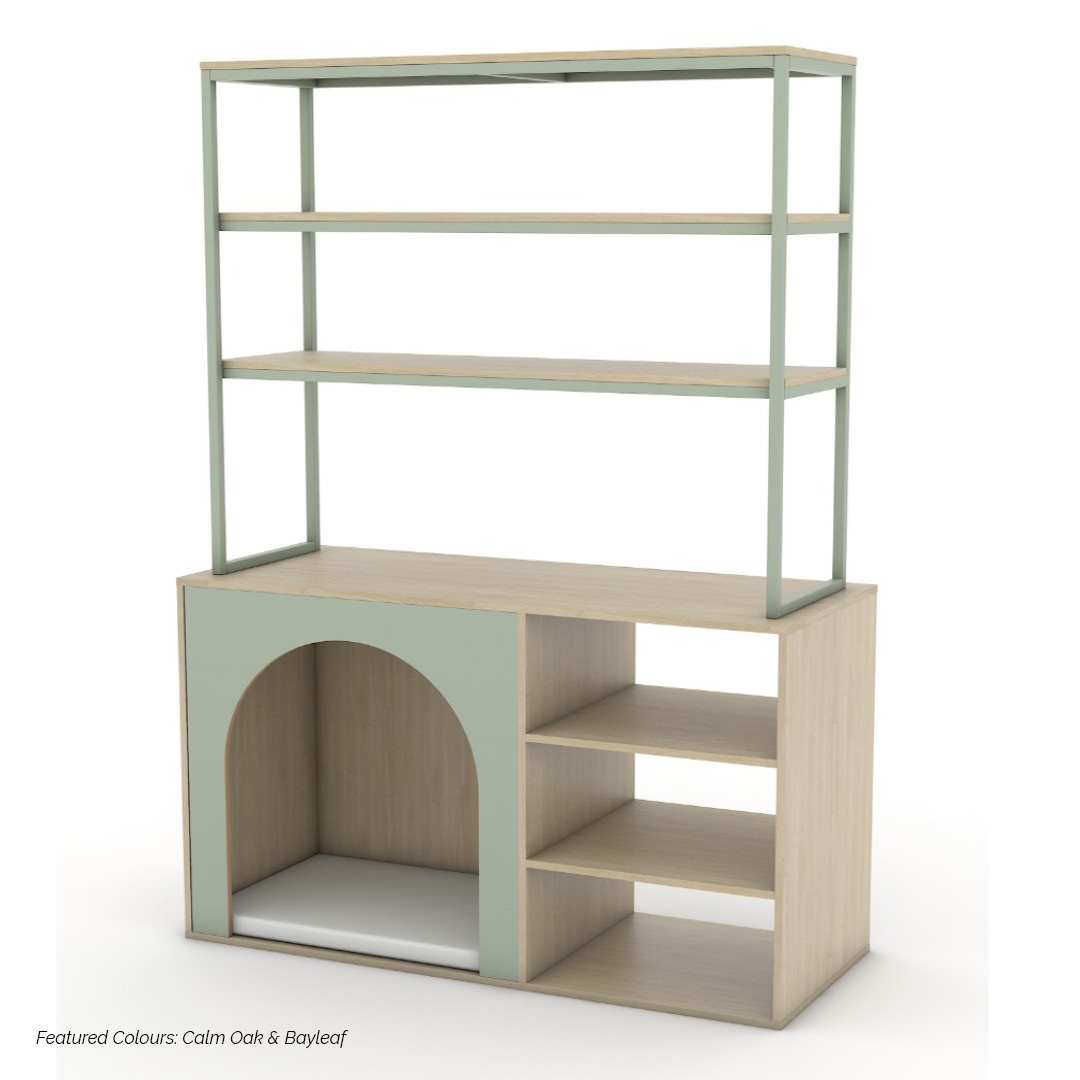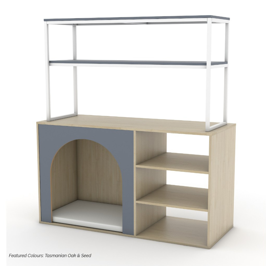 The Modula Plus Nook Unit – Linear combines clean lines with practical functionality, creating a versatile space for both quiet retreat and organised storage. Defined by its Linear frame, this unit introduces structure and simplicity while supporting a range of learning experiences.