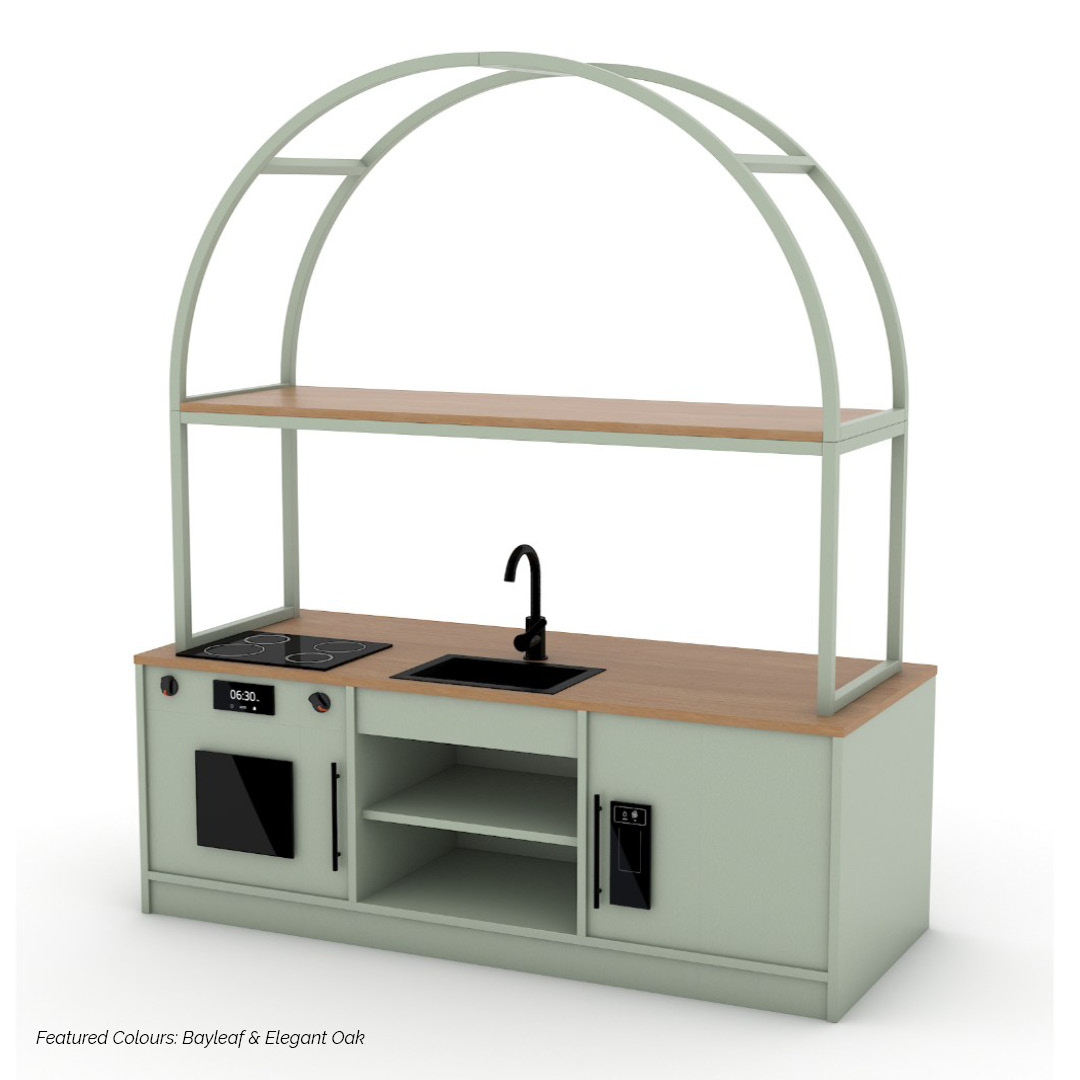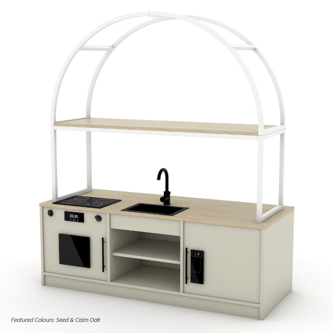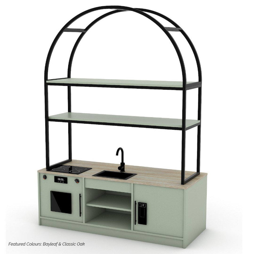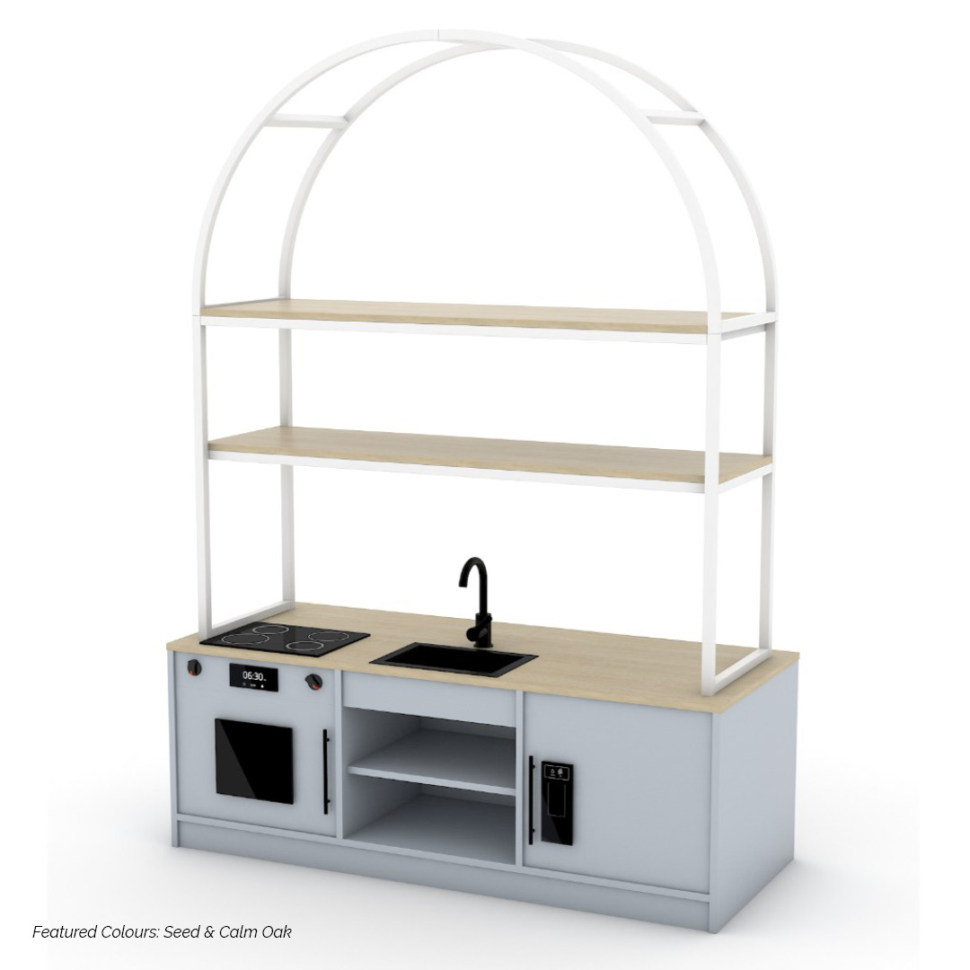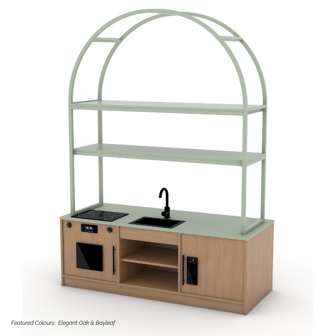 The Modula Plus Kitchen – Arch combines practical functionality with a soft, inviting design, creating a dedicated space for imaginative role play. Defined by its Arch frame, this unit introduces a sense of flow and warmth while supporting everyday play-based learning.