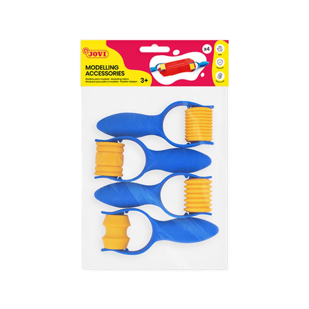 This set of 4 Modelling Rollers in Various Shapes allows children to explore textures and patterns with modelling clay. Each roller features a different design, encouraging experimentation, creativity, and hands-on learning while supporting fine-motor development and hand-eye coordination. Ideal for use with clay, dough, or other modelling materials, these rollers make sculpting and texturing fun and engaging for young learners.