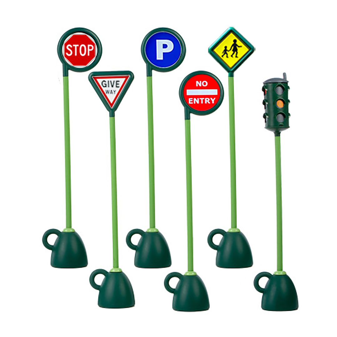 Set includes 6 signs: Parking, Traffic Lights, Stop, Give Way, No Entry, Pedestrian Crossing