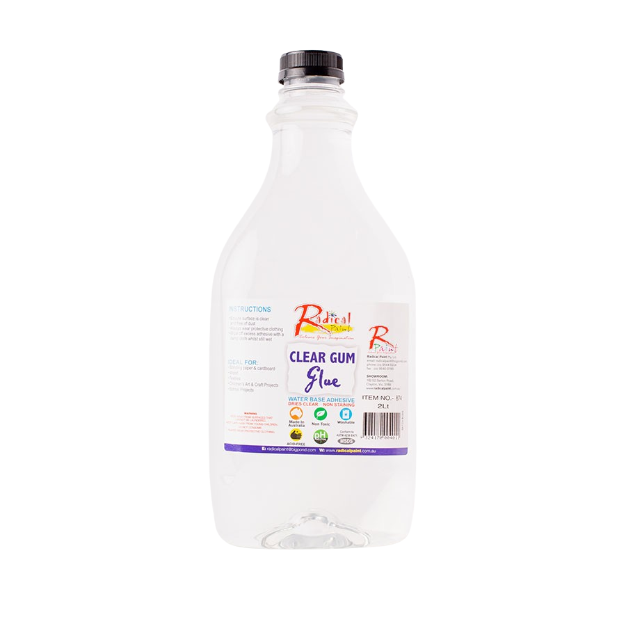 Australian made Clear Gum glue adheres to most surfaces and dries clear.